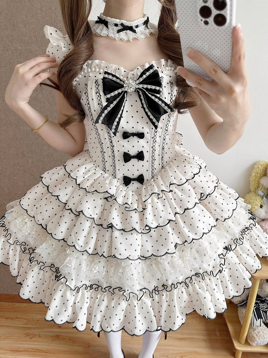 Lolicat Polka Dot Princess Pink White Black Lolita Dress