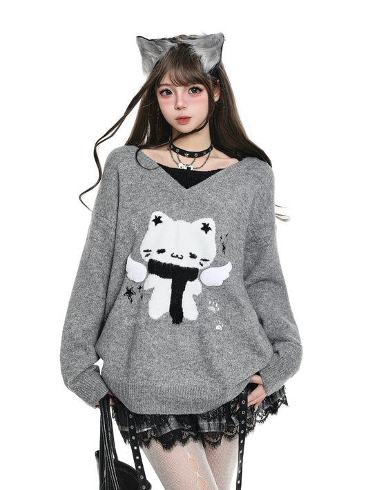 Young Eyes Angel Cat Gray Blue Sweater