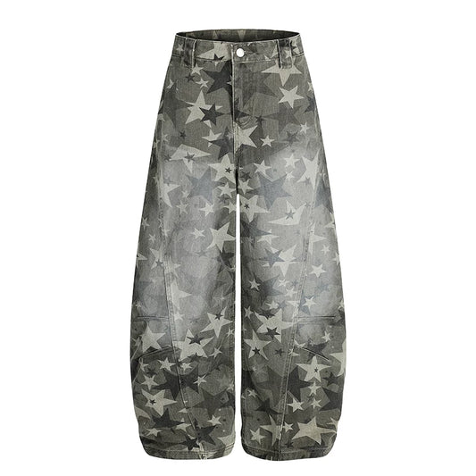 Young Eyes Five Point Star Distressed Gray Baggy Jeans