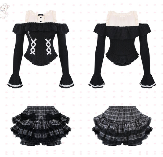 Serendipity Light Gothic Twilight Overture Black Sweater Skirt Two Piece Set