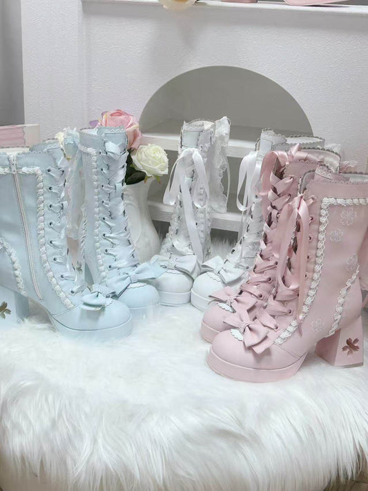 Pastry Chef Cherry Blossom Pink Blue White Sakura Boots