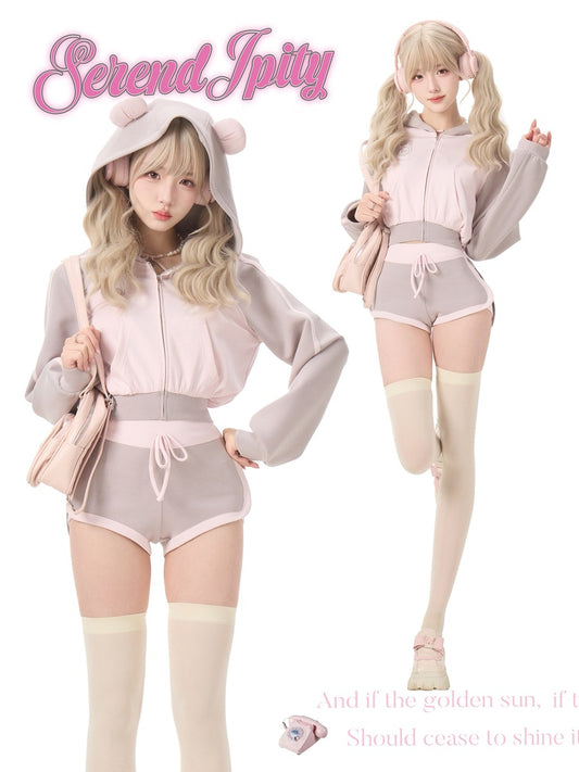 Serendipity Sporty Sweetheart Pink Gray Jacket Shorts Two Piece Set