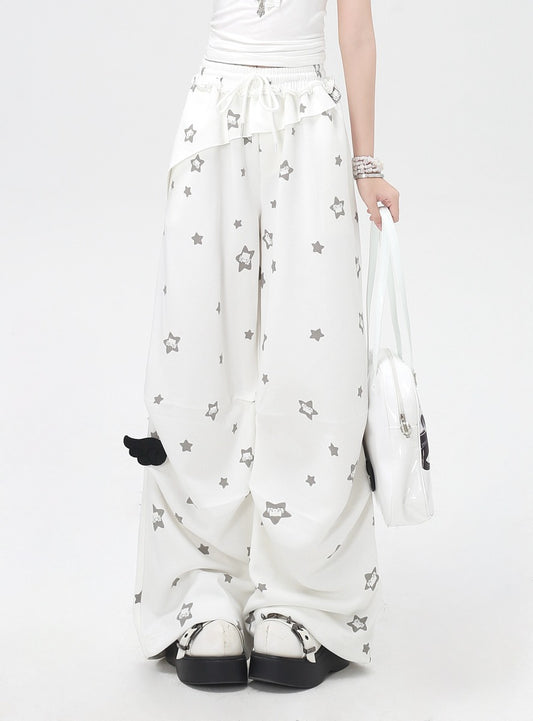 Crazy Girl Cat Polka Dot White Hoodie Pants Two Piece Set