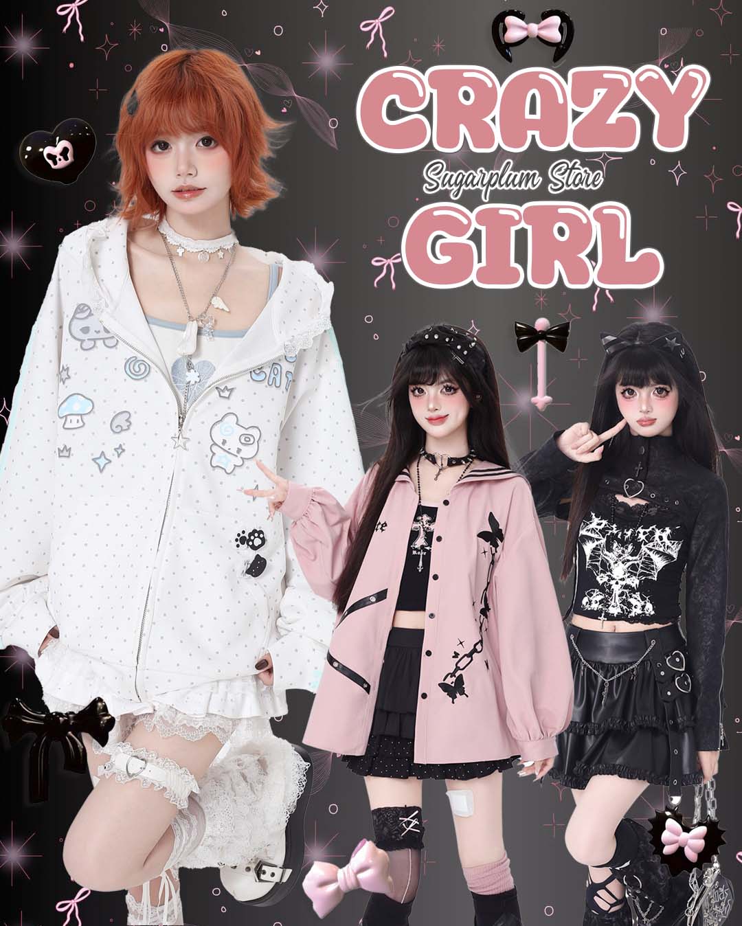 Crazy Girl Chain Butterfly Black Pink Sailor Collar Jacket