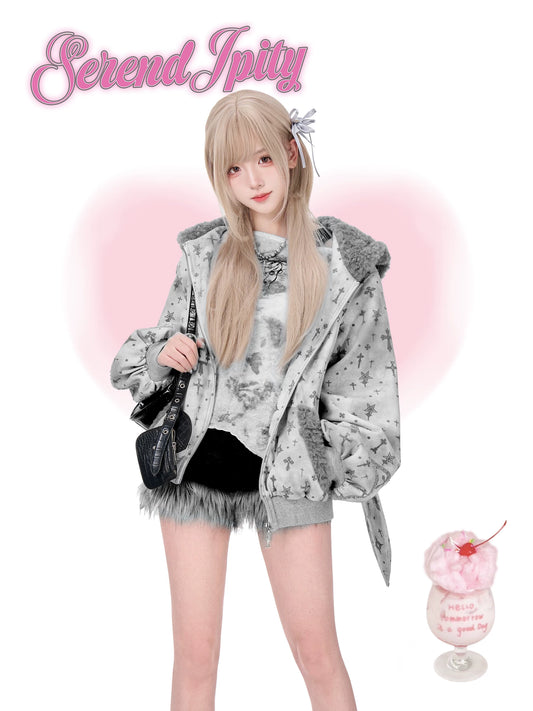 Crazy Girl Fashionista Deer Pink Brown Thick Plush Hooded Jacket Leg Warmers Set