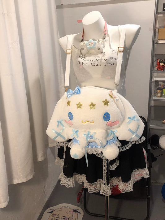 White Blue Cinnamon Dog Y2K Lace School Backpack Doll Bag
