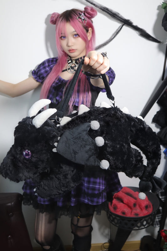 Black Purple Devil Y2K Lace School Backpack Doll Bag