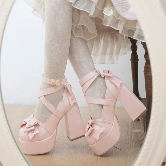 Beauty Bunny Midsummer Heart Knot Princess Blue Pink White Black Red Lolita High Heels Shoes