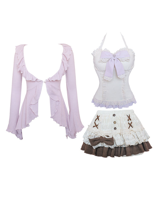 Serendipity Dessert Series Taro Chocolate Cami & Purple Cardigan & Skirt Three Piece Set
