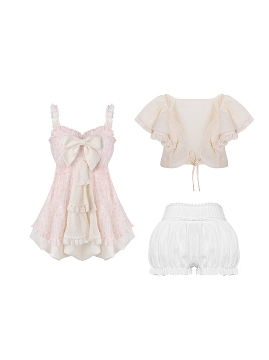 Serendipity Pink Snow Velvet Cami & Cardigan & Pink Bloomers Three Piece Set