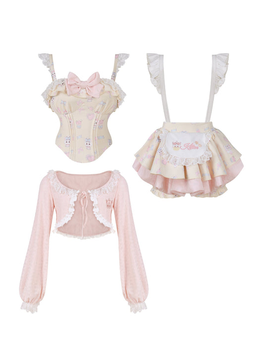Serendipity Pudding Kitten Cami & Suspender Skirt & Cardigan Three Piece Set