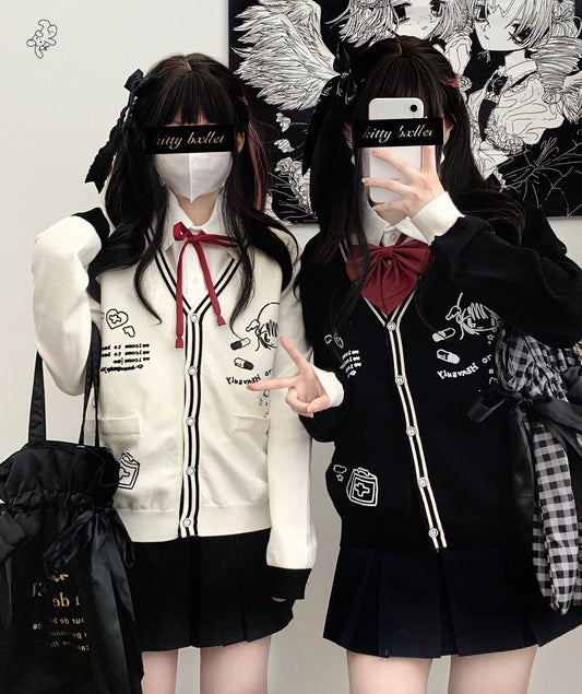 Kitten Bullet Love Fleur White Pink Black Cardigan