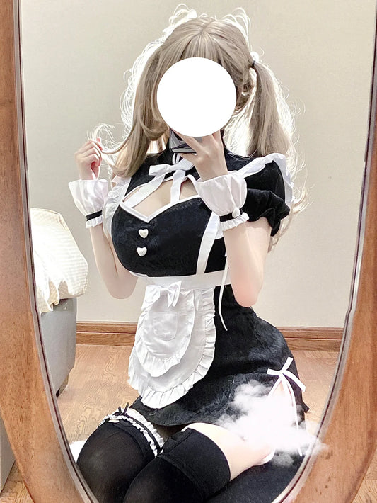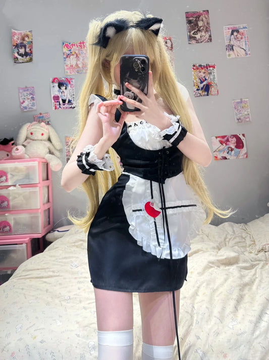 Sexy Bleeding Heart Corset Black White Cosplay Maid Dress