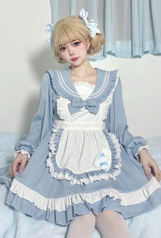 Serendipity Cat Claw Bow White Apron Blue Pink Maid Dress