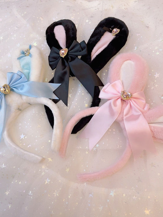 Sweetheart Princess Plush Rabbit Ears Diamond Heart Winter Hairband Headband