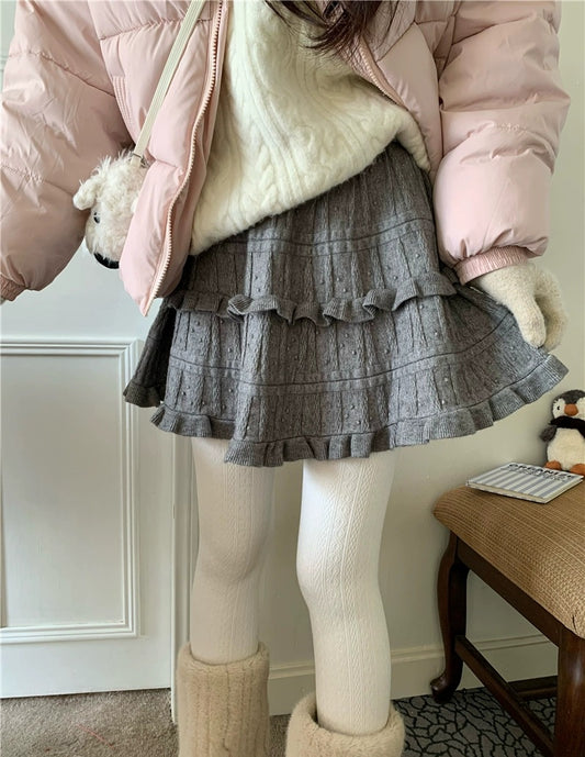 Winter Ruffled Dots White Gray Black Brown Mini Skirt
