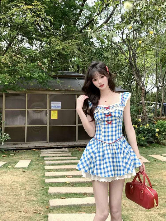 Plus Size Women Plaid Farm Bow Rabbit Bunny Cottagecore Pastel Dress