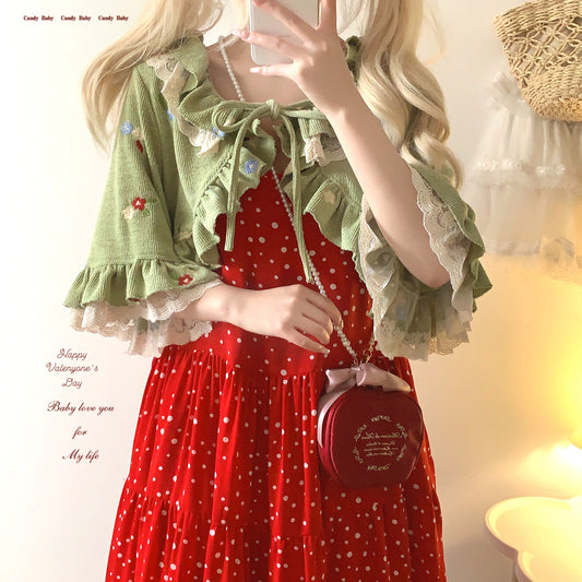 Dormir Doll Wildflower Floral Green Cream Shrug Cardigan