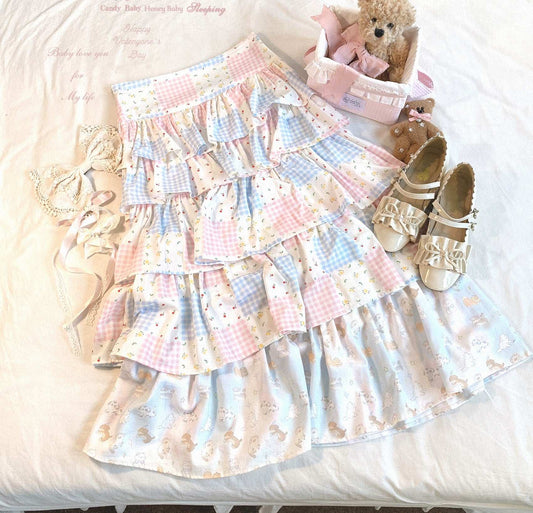 Dormir Doll Lullaby Dream Blue Pink Cream Long Tiered Skirt