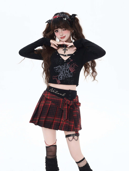 Crazy Girl Cookies Pineberry Plaid Red Pleated Skirt