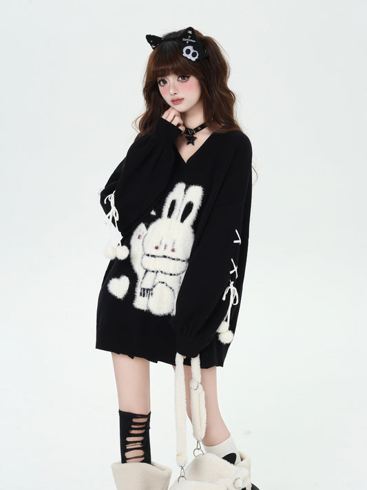 Crazy Girl Wishing Rabbit Pink Black Red Sweater