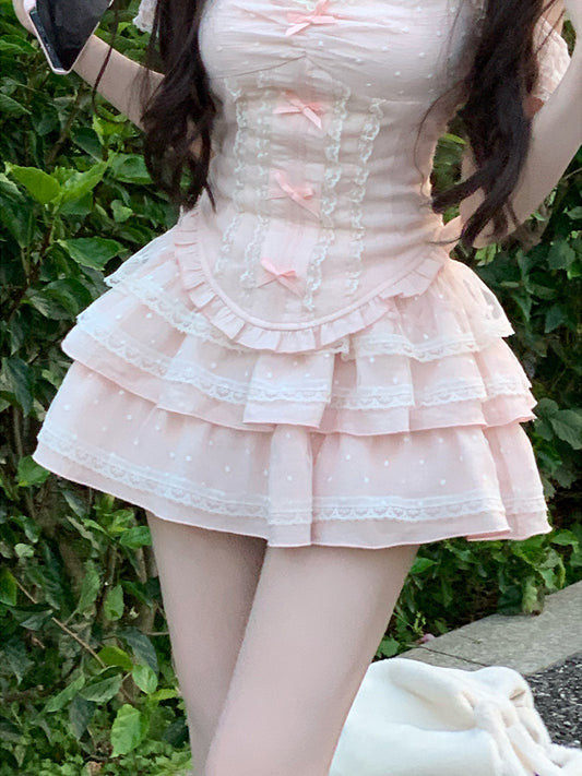 Creamy Cute Midsummer Ballet Pink Cami Top & Cream Skirt Two Piece Set