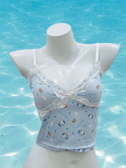 Coquette Angel Cute Kitty Cat Lace Pink Blue White Camisole Tank Top