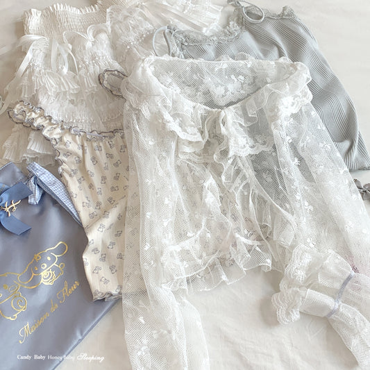 Dormir Doll Sweet Bow Mesh Sheer White Pink Cream Cardigan