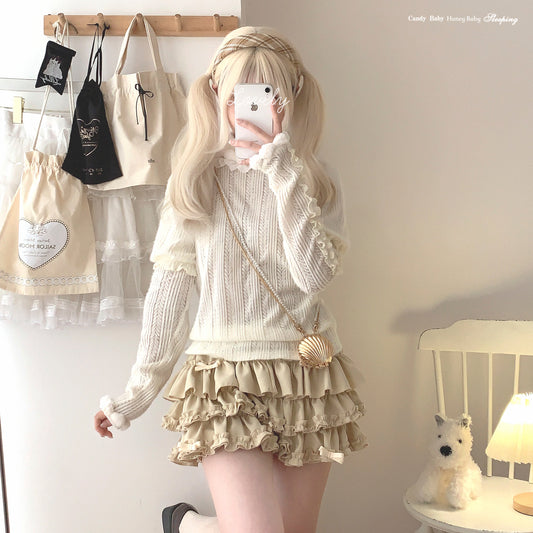Dormir Doll Winter Puff Fur Ball High Collar Cute Knit Sweater Top