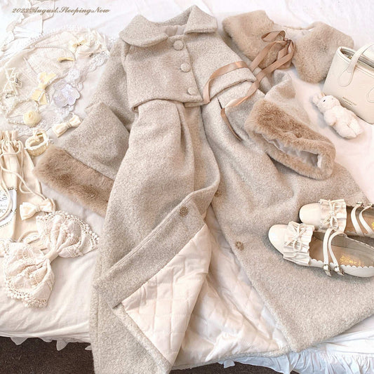 Dormir Doll Lady Retro Pink Beige Black Overcoat