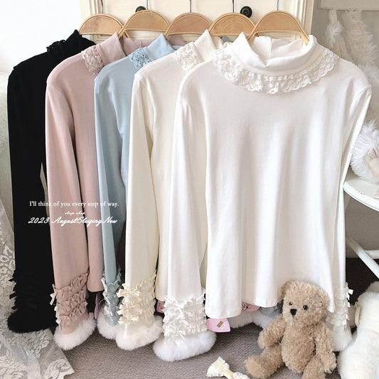 Dormir Doll Frosted Sugar Turtle Neck Pink Blue White Cream Black Sweater Top