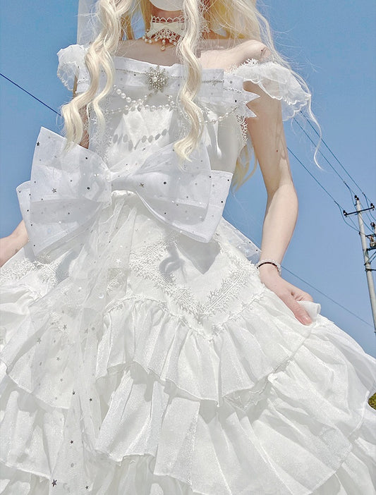 Cinderella Ruffled Princess Snowflake White & Blue Dress