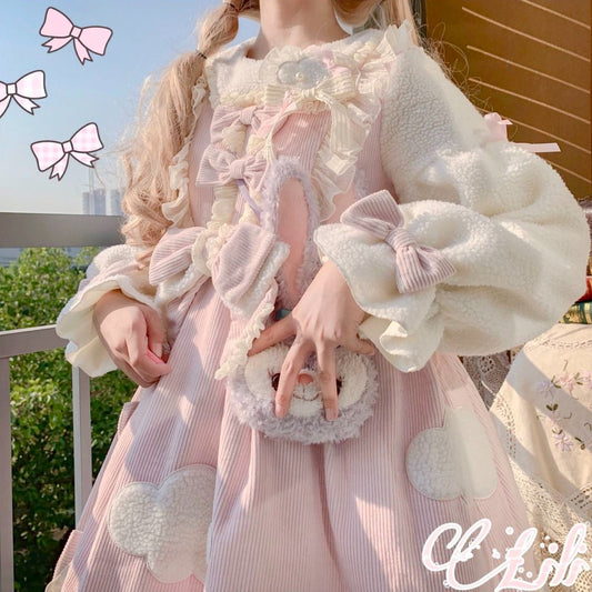 Winter Thick Velvet Plush Cloud Princess Pastel Pink Blue Brown Dress