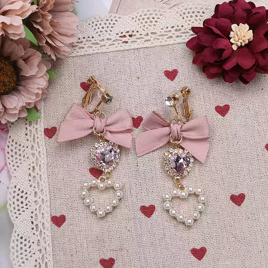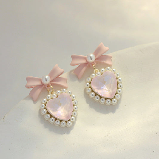 Heart Bow Pearl Coquette Girl Sweet Earrings