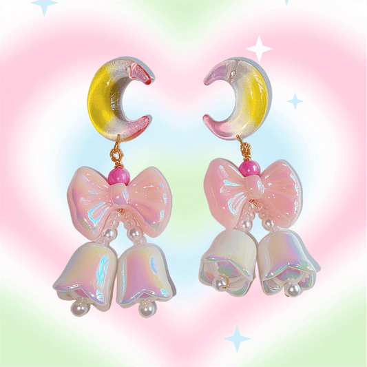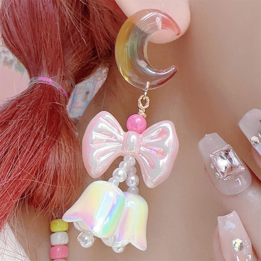 Jelly Crescent Moon Bow Cute Sweet Earrings