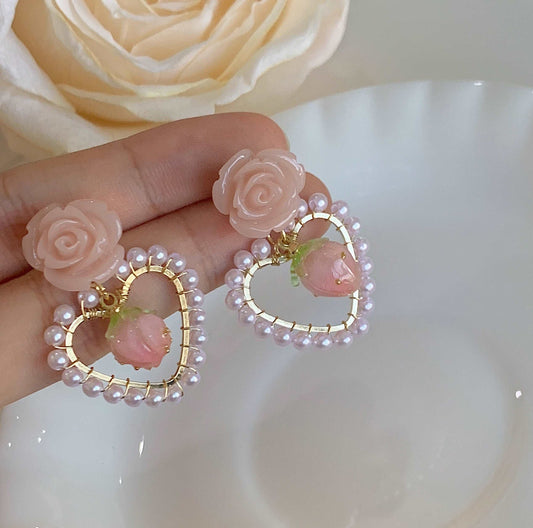 Gem Pearl Heart Love Jewelry Classic Earrings