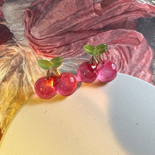 Pink Cherry Crystal Pretty Cute Women Earrings Earclips
