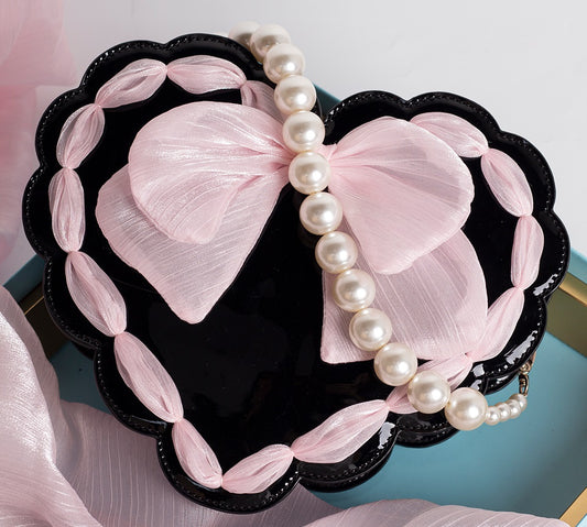 Lovely Pearl Decorated Heart Messenger Bag