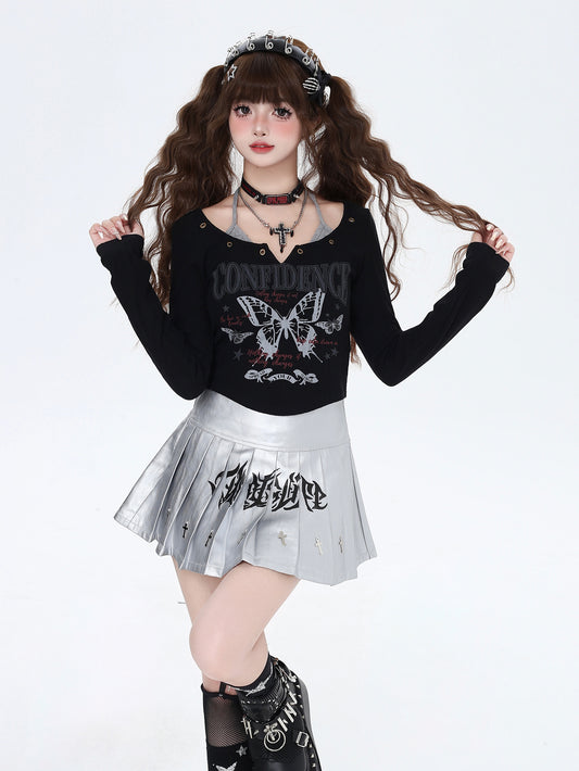Crazy Girl Showa Night Butterfly Graffiti Black Red Purple Shirt Top