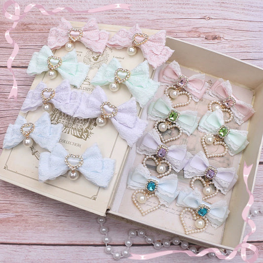 Jirai Kei Pearl Extra Love Bows Heart Hair Clips Hair Accessories