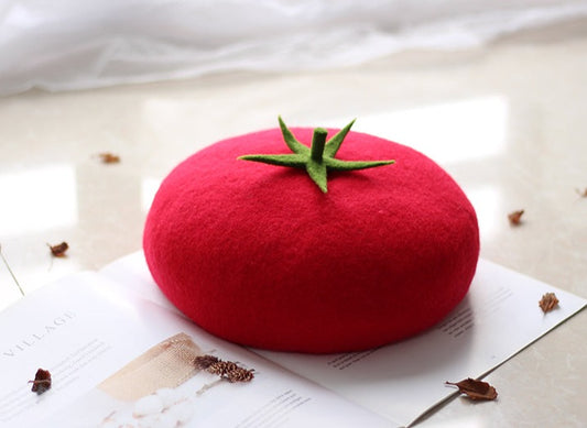 Cute Handmade Orange Persimmon Wool Beret Hat