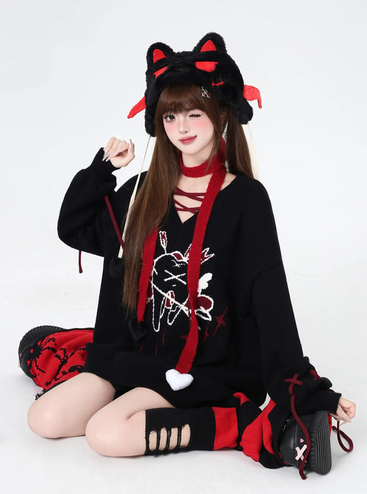 Crazy Girl Lovelorn Club Tooth Fairy Red Black White Knit Sweater