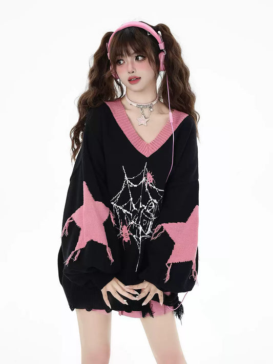 Crazy Girl Spider Halloween Pink Black Knit Sweater