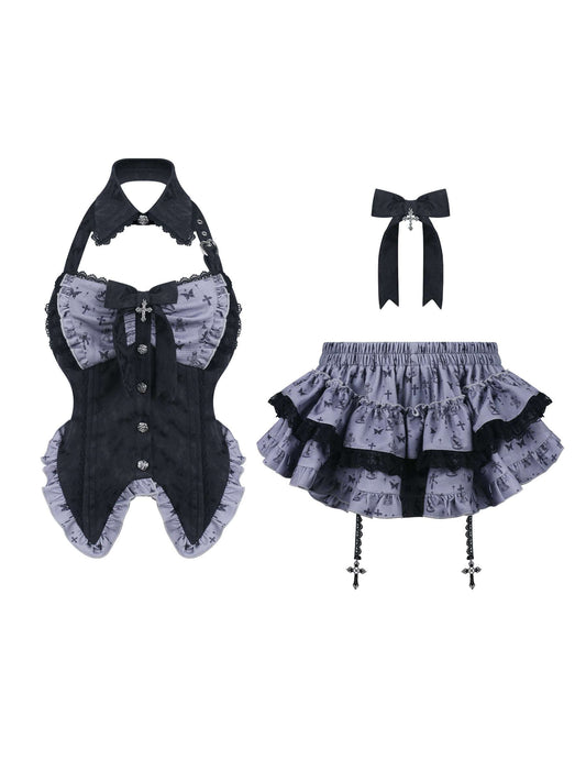 Serendipity Dark Night Doll Black Purple Vest Top & Skirt Two Piece Set