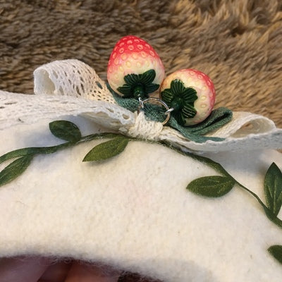 Cute Winter Christmas Strawberry Green Leaves White Beret Hat