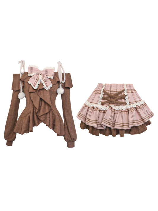 Serendipity Caramel Cocoa Brown Top & Pink Skirt Two Piece Set