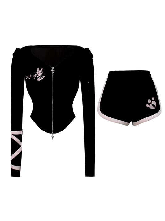 Serendipity Comic Black Rabbit Jacket & Shorts Two Piece Set