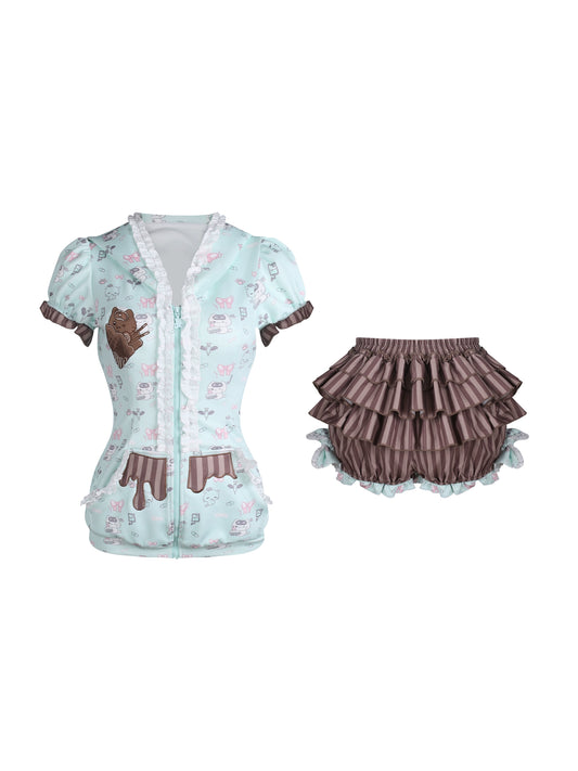 Serendipity Dessert Series Mint Blue Top & Pink Bloomers Two Piece Set