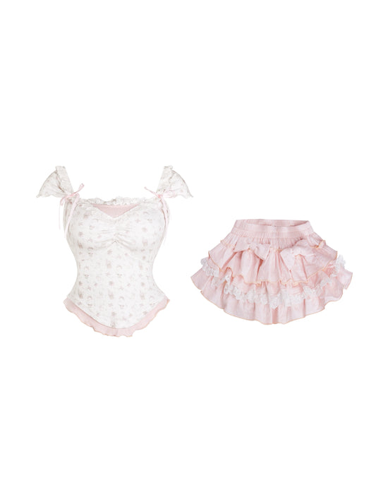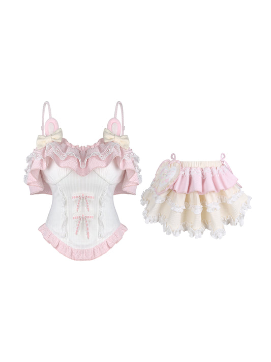 Serendipity Dessert Series Rabbit Cheese Pink Yellow Cami & Bloomers Two Piece Set