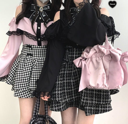 Kitten Bullet Love Ban Plaid Black White Skirt